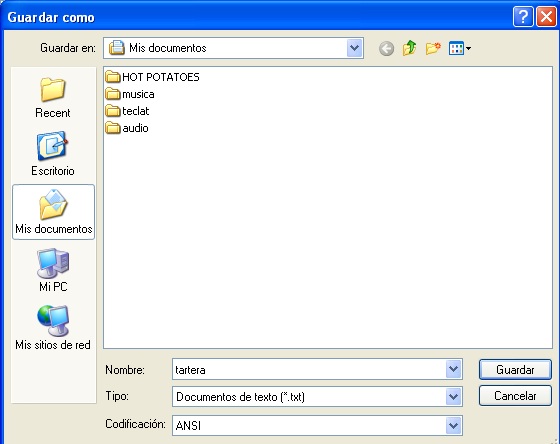 - Ara escriviu el nom del vostre fitxer: tartera.
