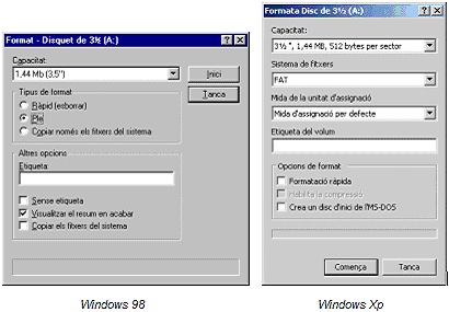 de ser formatat. La opció equivalent, en Windows XP, s'aconsegueix