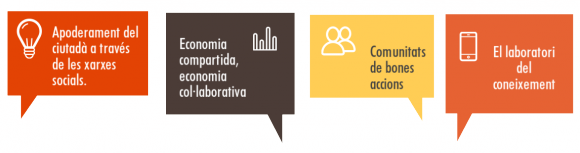 El primer bloc, "Apoderament del ciutadà a través de les xarxes socials", moderat per Núria Alonso, tècnica de projectes socio-tecnològics, al Teb, vam comptar amb la participació de: