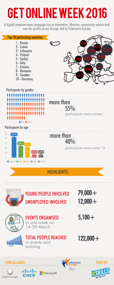 Des de la primera edició de la Get Online Week, al 2010, més de 15 milions d'europeus i europees s'han vist beneficiats de la iniciativa, han reflexionat sobre la importància de la capacitació digital i han constatat la feina que es realitza als telecentres.