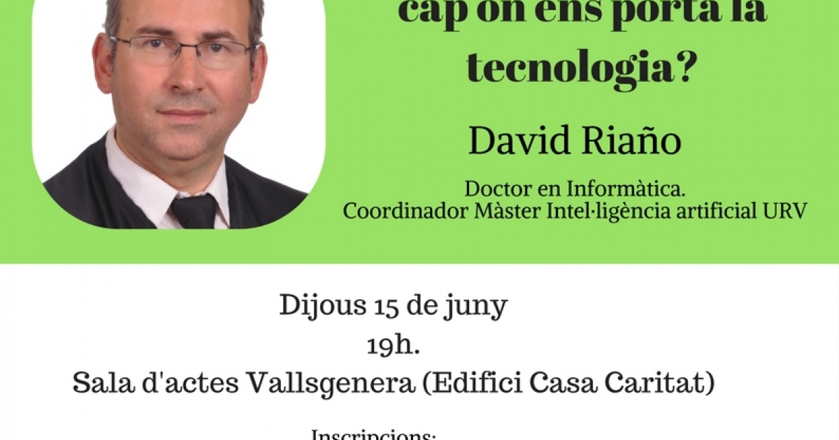 It will be Thursday June 15 at 7 pm in the auditorium Vallsgenera of Casa Caritat. Will be given by David Riaño, PhD in Computer Science and Artificial Intelligence expert, who will be talking on "Robots and people, which leads towards technology".