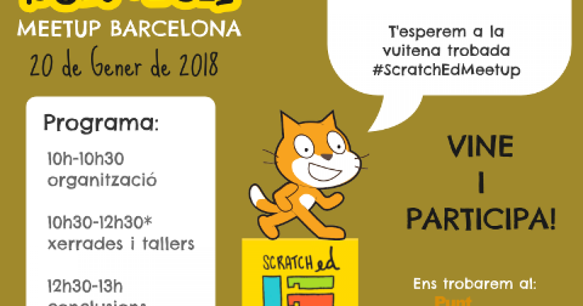 The 8th meeting of the Scratch community in Barcelona will take place on Saturday, January 20, at the Punt Multimèdia of the Casa del Mig in the Sants district of Barcelona. Those interested in participating should confirm attendance.