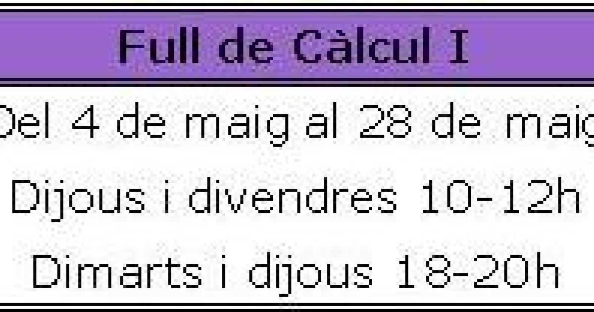 OBJECTIU: Adquirir els coneixements bàsics sobre el full de càlcul i donar una visió genèrica de la seva utilització i potencialitat.