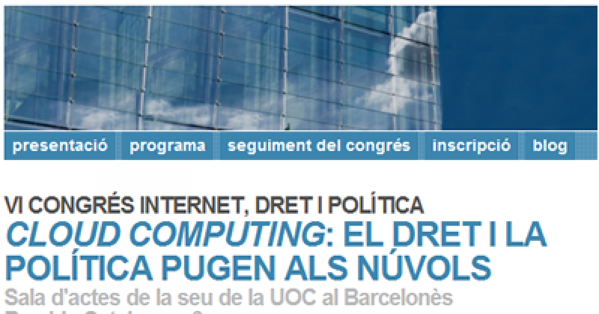 EL VI Congrés Internacional IDP - Internet, Dret i Política organitzada per la Universitat Oberta de Catalunya centra la seva atenció en el Cloud Computing, partint de la base que el 2010 serà l'any del Cloud Computing. Així ho afirmen nombrosos analistes i especialistes que veuen que s'expandeixen aplicacions que, en lloc de ser executades a l'ordinador de sobretaula o al portàtil, són hostatjades en un servidor, i a les quals s'accedeix mitjançant un navegador qualsevol. Aquesta expansió és facilitada per la massiva adopció d'ordinadors ultraportàtils i telèfons mòbils intel·ligents, així com per la creixent realitat del teletreball i la col·laboració en xarxa entre administracions, empreses i ciutadans.