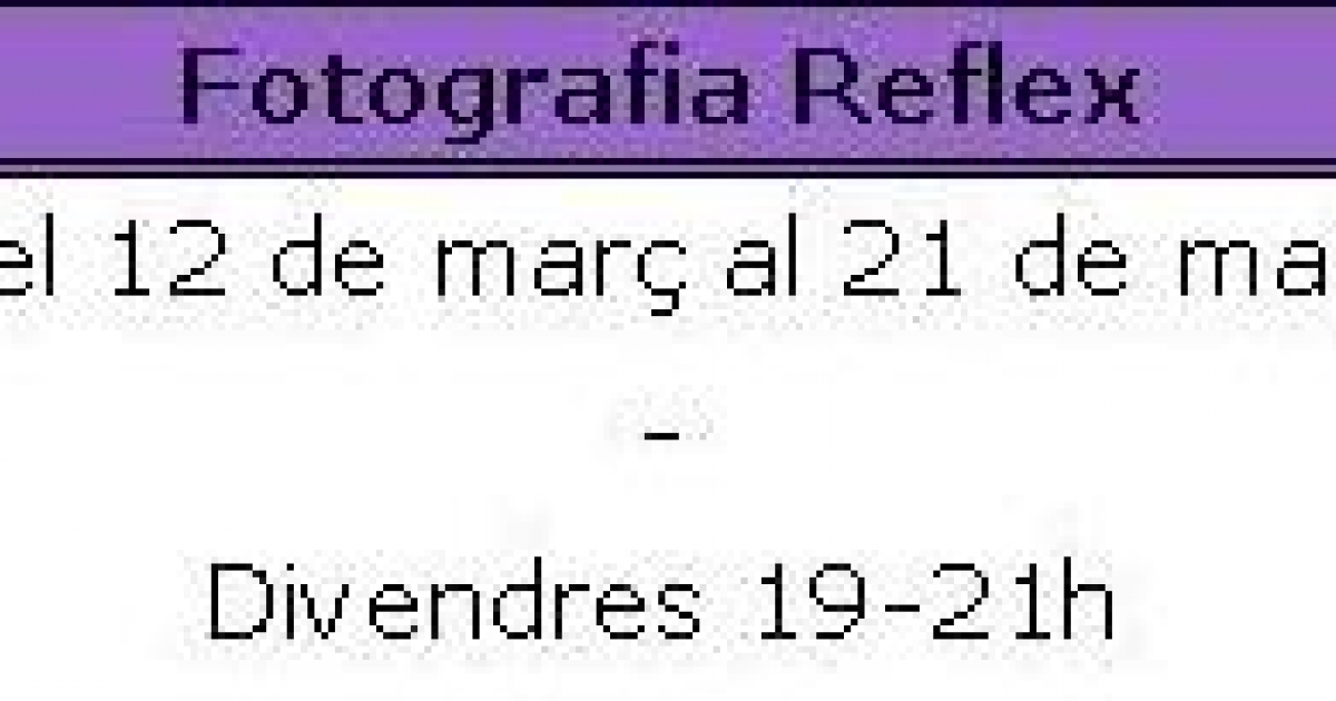 OBJECTIU: Aquest curs està dirigit a persones que disposin d'una càmera reflex. L'objectiu és adquirir les bases de la tècnica de la fotografia digital.