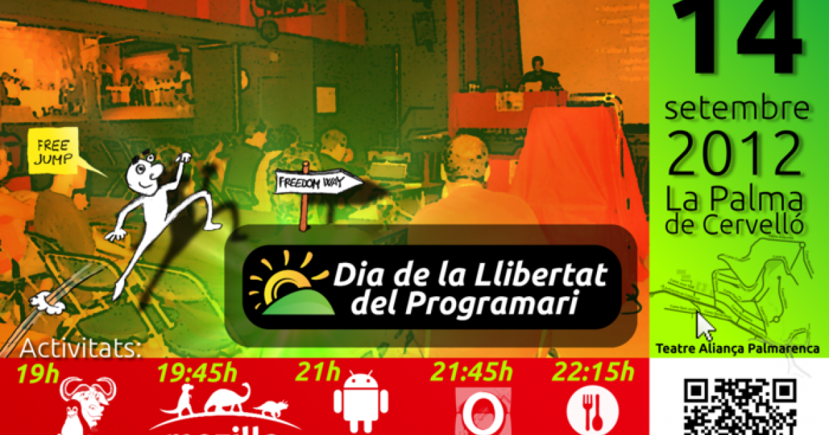 DIA DE LA LLIBERTAT DE PROGRMARI 2012, a les 19h a l'Aliança.  Celebració mundial que a Espanya només es cel.lebra a 5 llocs.  Els actes són gratuïts i el sopar té un cost de 12€ (els tiquets es compren a l'Aliança).