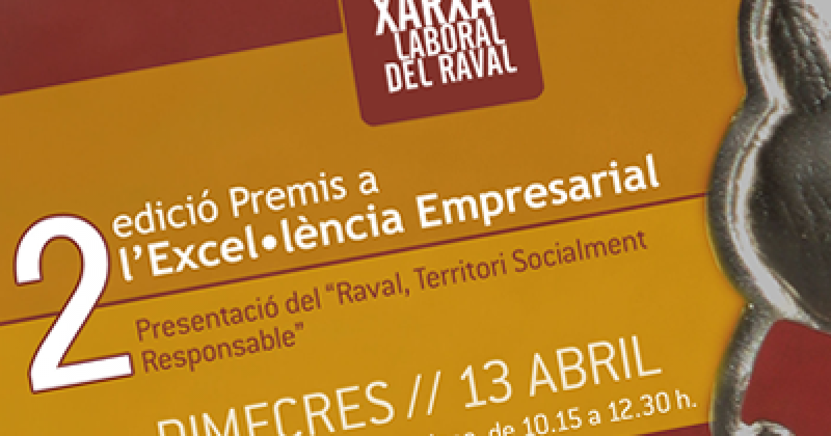 La 2a edició dels Premis a l’Excel·lència Empresarial, organitzats per la Xarxa Laboral del Raval, tindrà lloc el proper dimecres 13 d’abril a les 10:15h a la sala d’actes del Museu Marítim.