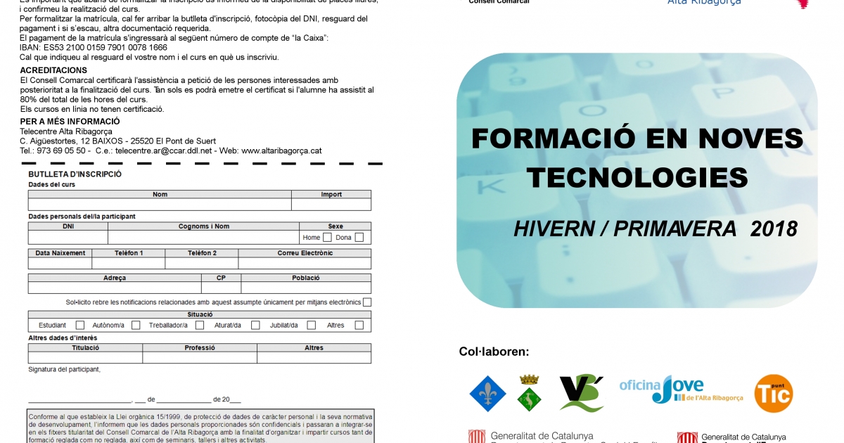 Cartell dels cursos del Punt TIC de l'Alta Ribagorça