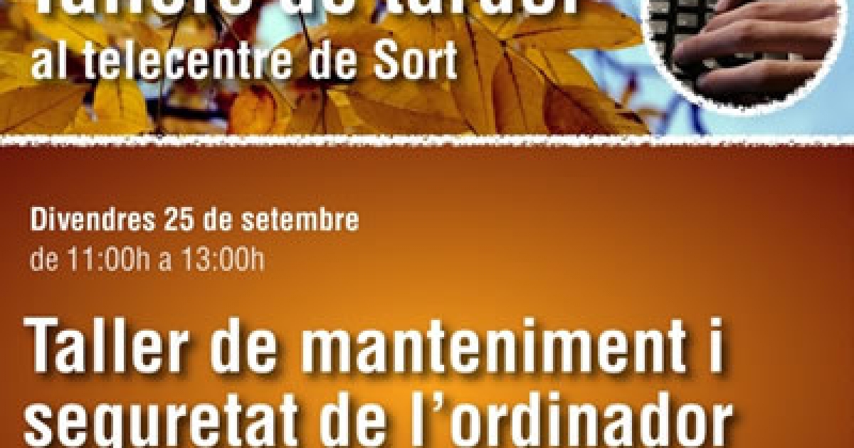 Aquest taller de "Manteniment i seguretat en el PC amb windows" es realitzarà el divendres 25 de setembre, d'11:00 a 13:00 hores) al Punt TIC de Sort. És molt recomanable per a tot tipus d'usuaris/àries.