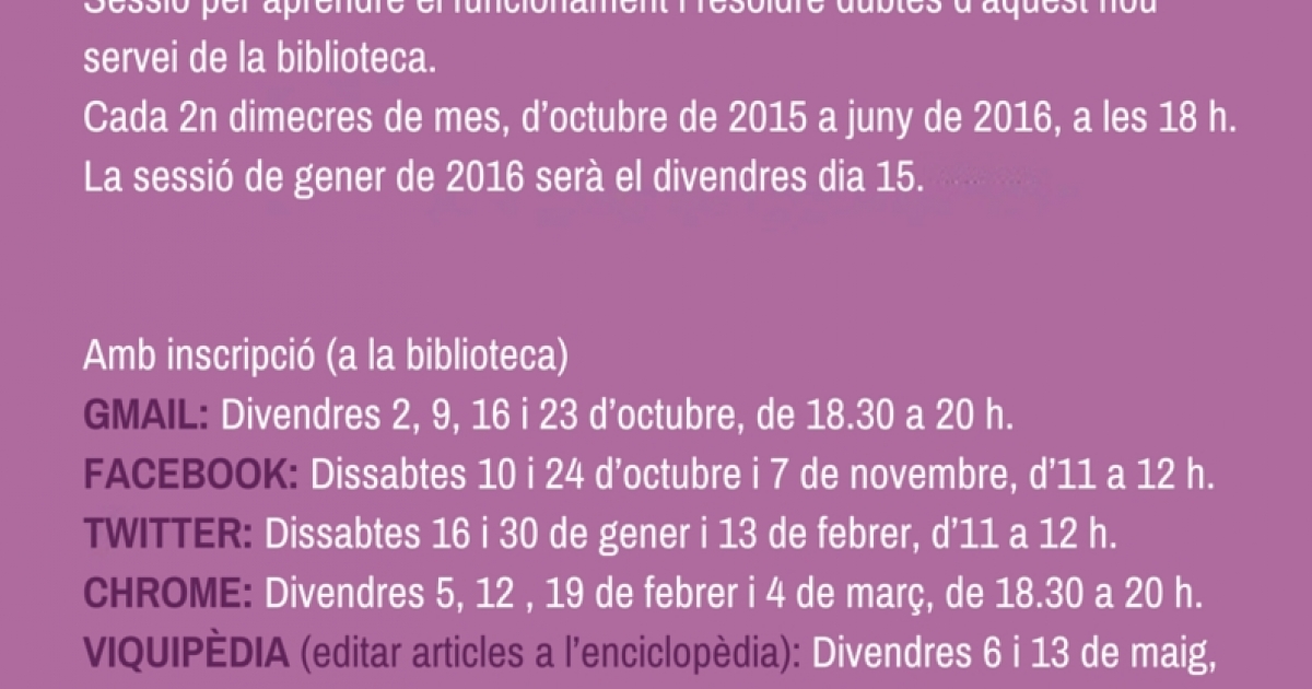 El curs es realitzarà en tres sessions: 16 i 30 de gener i 13 de febrer a les 11 hores.